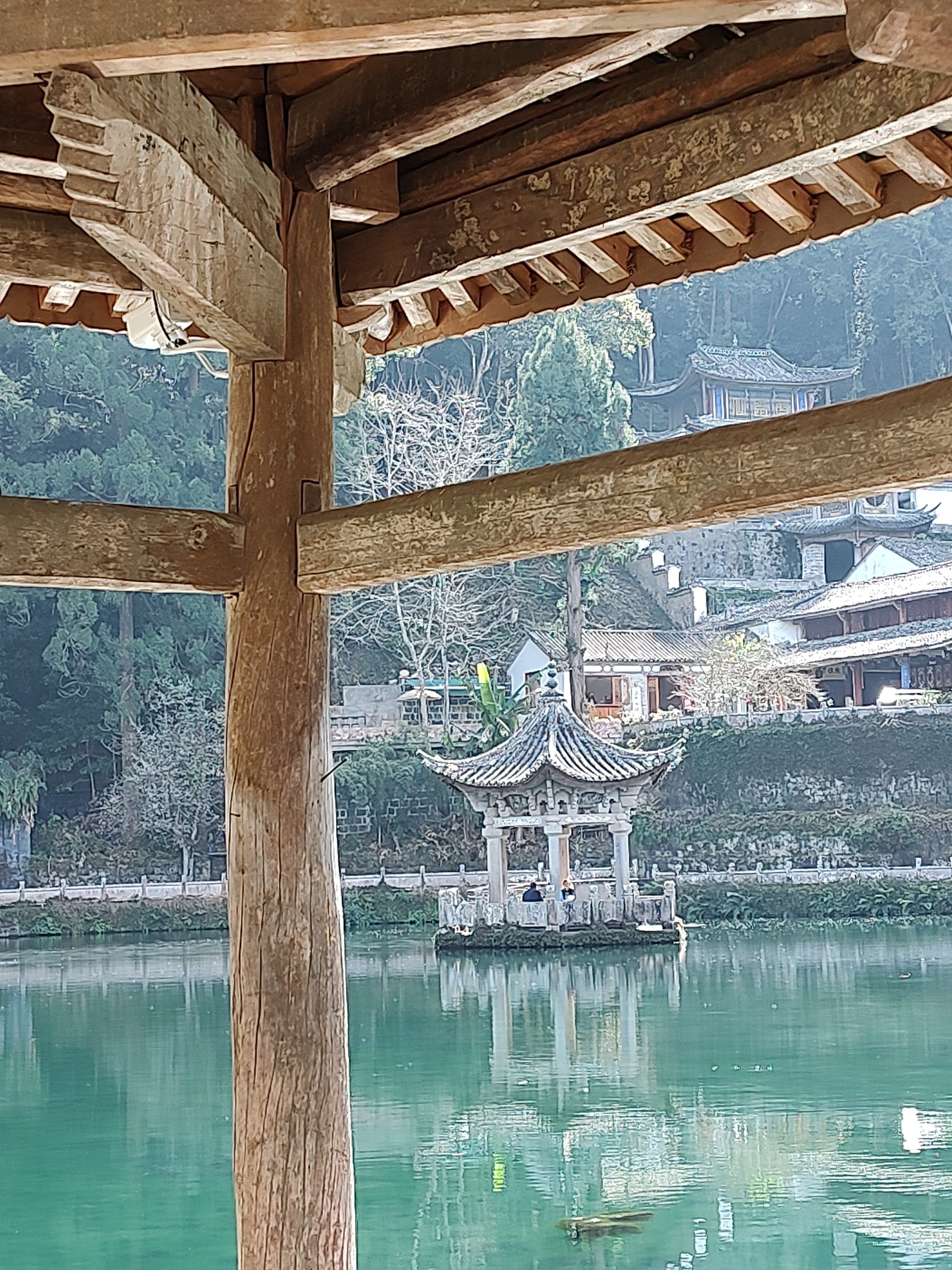 The bridges we visited were all built around the mid-18th century. They appear fragile or dilapidated from a distance, but once you step inside, you are surprised by how intact they remain. These structures are marvels of Qing Dynasty engineering, constructed entirely from wood without using a single nail.